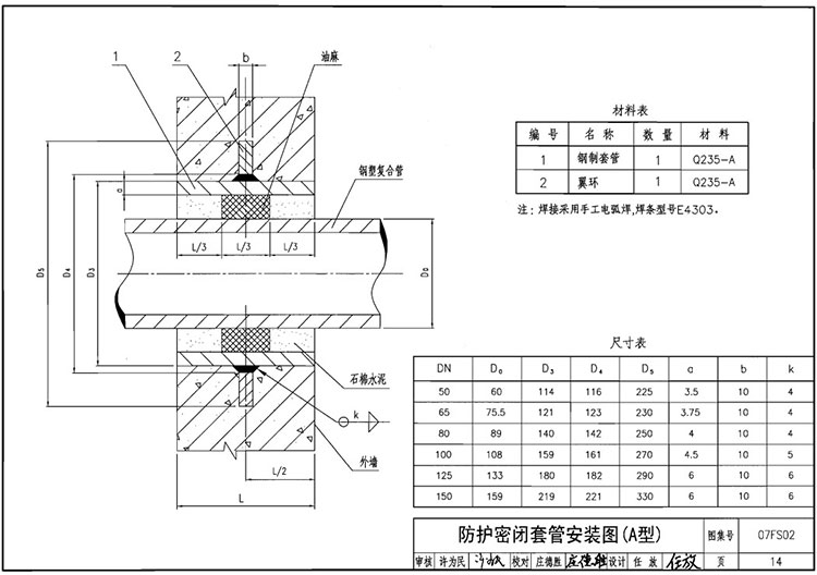 07FS02防護密閉套管圖集A B C D E F技術參數