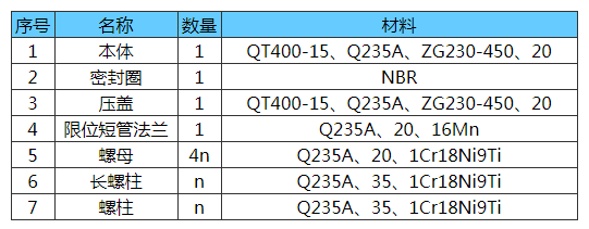 VSSJA-1型單法蘭限位伸縮接頭材料表